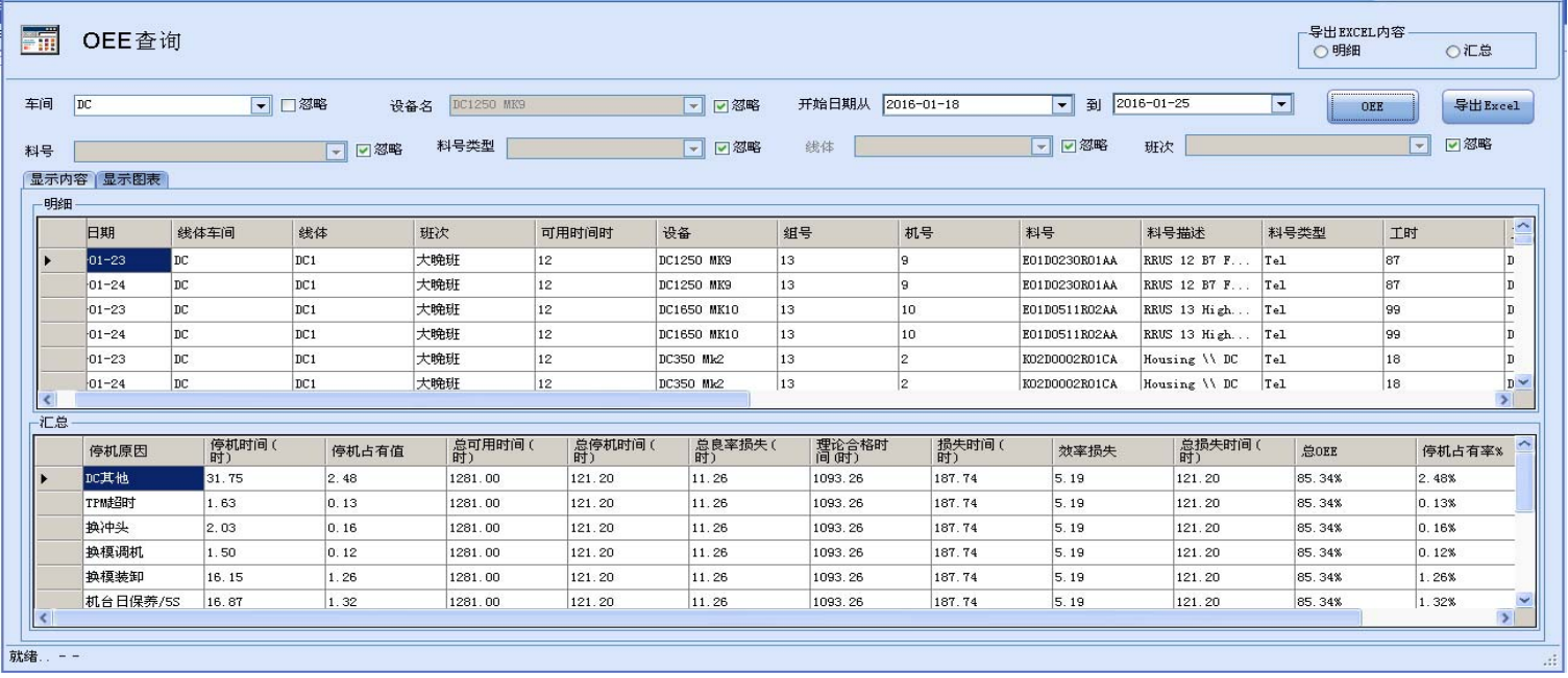 系统提供了基于CS模式的物料操作管理,实现数据实时分析,对整个生产流程以及设备稼动率,损耗等进行管控